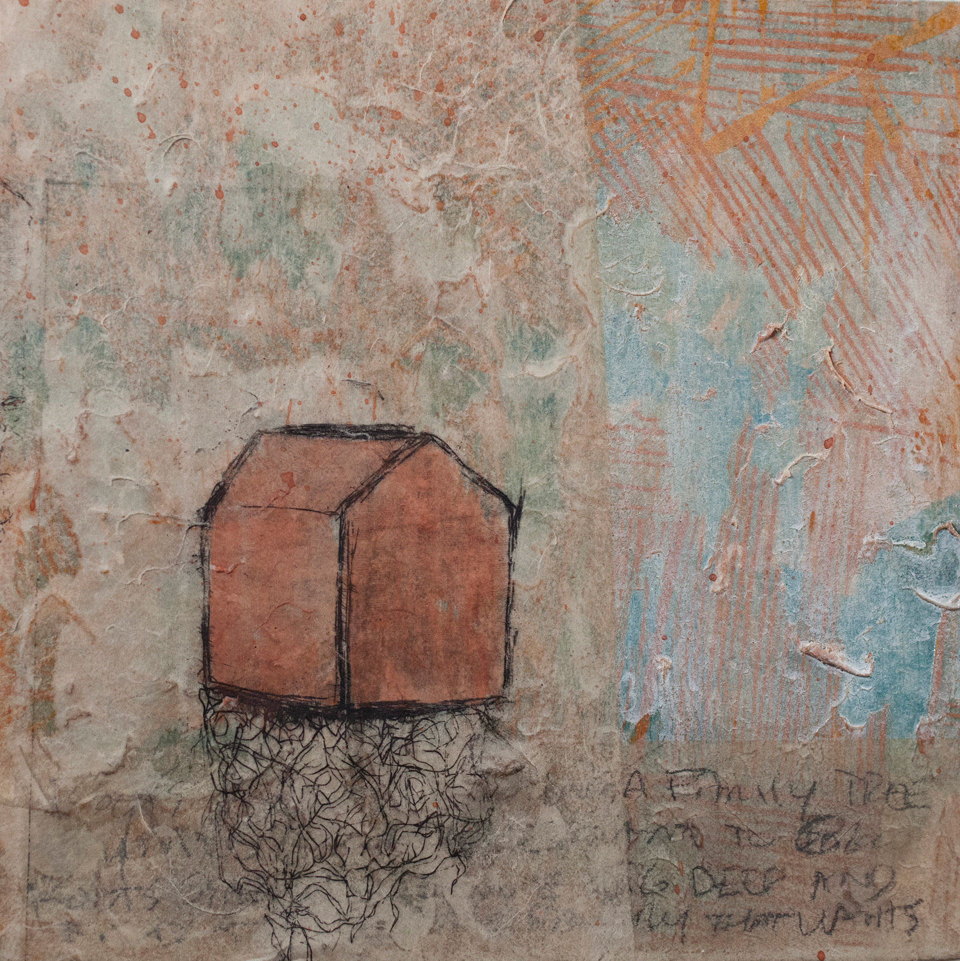 Journal: Building a Family, Etching, Graphite, Gouache, Wax Pastel, Tea Stained Paper, 8x10" 2022